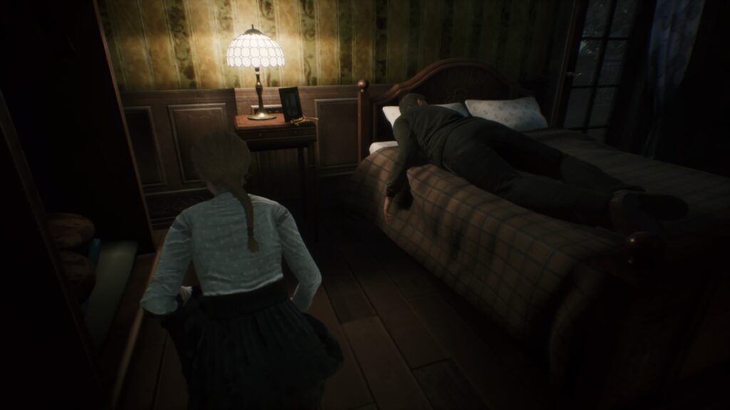 Atmosfären som ska göra spelet läskigt sitter inte heller riktigt där den ska, och små missar gör att det ibland blir mer lustigt än obehagligt. Som när jag tog mig ur min fångenskap och hör en antagonist ropa något i stil med ”she’s gone, I can’t find her” innan jag ens har hunnit flytta mig. Ljudbilden i sin helhet följer ett liknande mönster och det är svårt att avgöra till exempel om mina förföljare är precis utanför dörren eller på andra sidan huset. Likaså är det svårt att se någon logik i hur de rör sig och för det mesta kan jag utforska min omgivning utan att de stör mig något nämnvärt. Något som är extra synd eftersom jakten hade kunnat vara spelets huvudsakliga styrka.